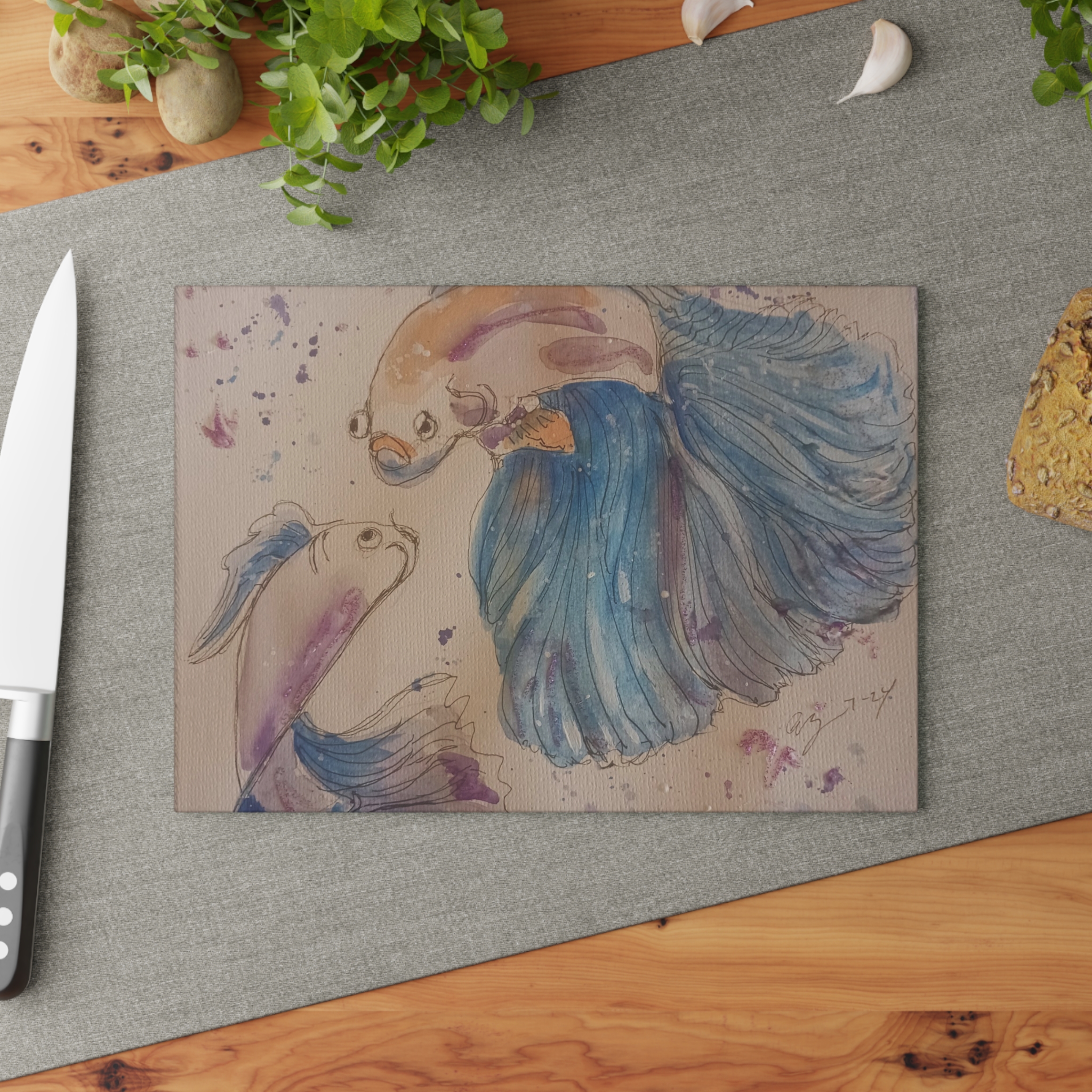 Bring a touch of character into any kitchen with this custom glass cutting board. Its tampered glass material is robust and helps prepare many a tasty meal for a long time to come. The textured surface makes it an ideal chopping, slicing, and dicing area. Available in two sizes: 8″ x 11″ and 11″ x 15″.